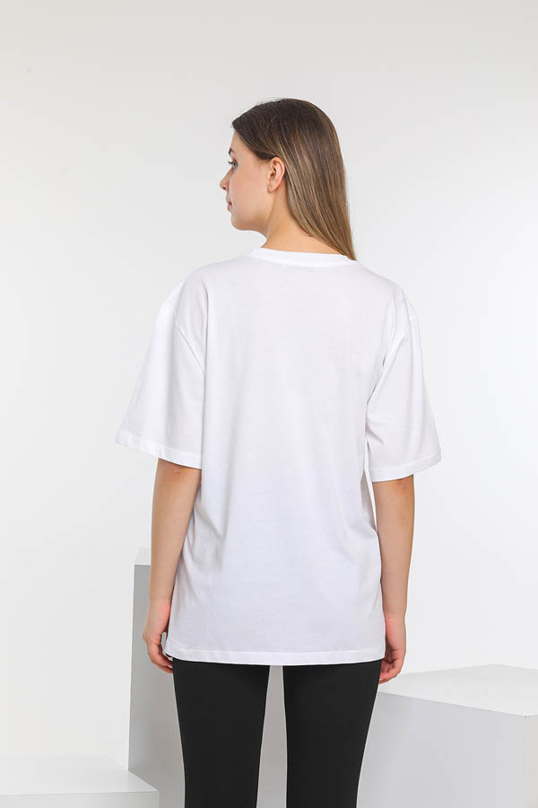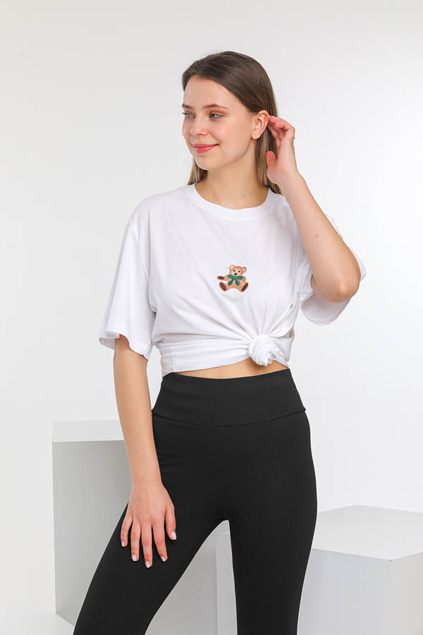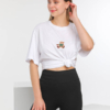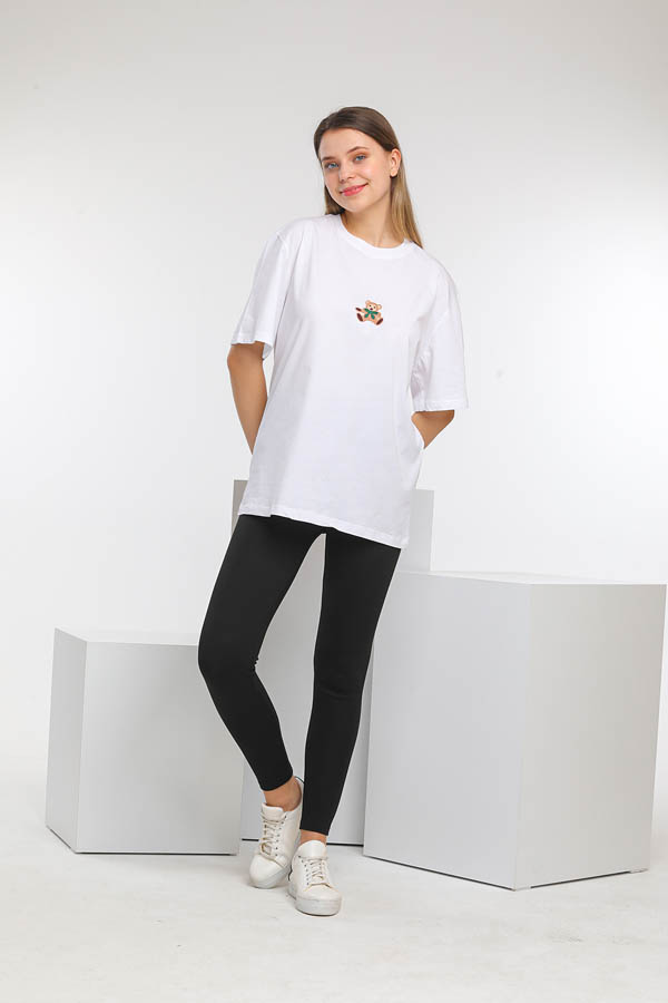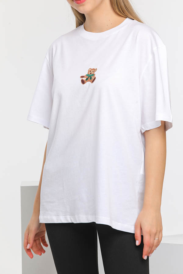 Beyaz Ayıcık Nakışlı Oversize Tshirt