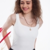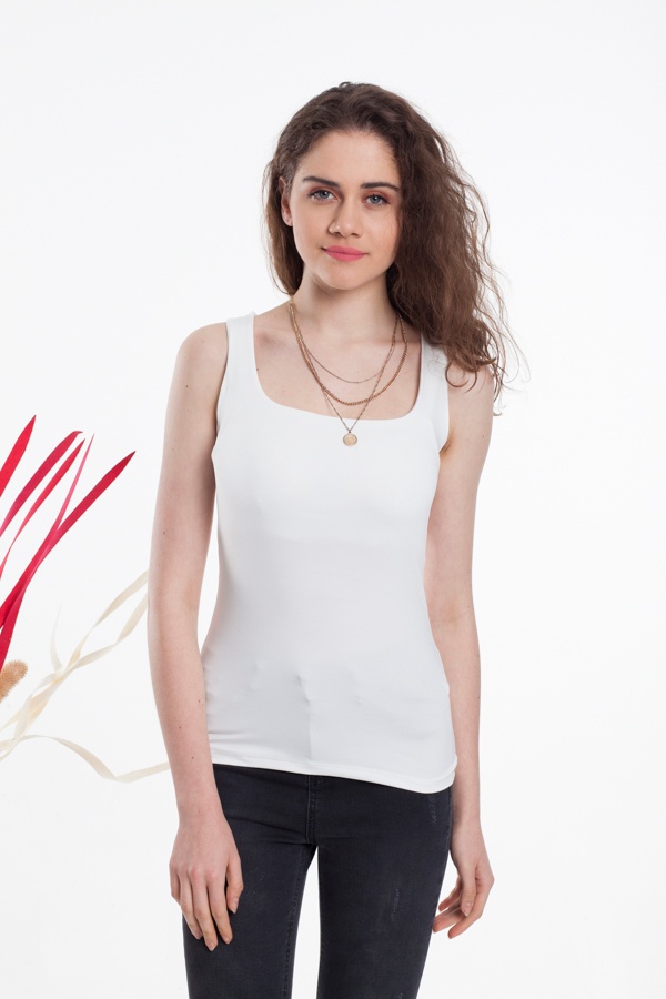 Beyaz U Yaka Kalın Askılı Jarse Bluz