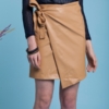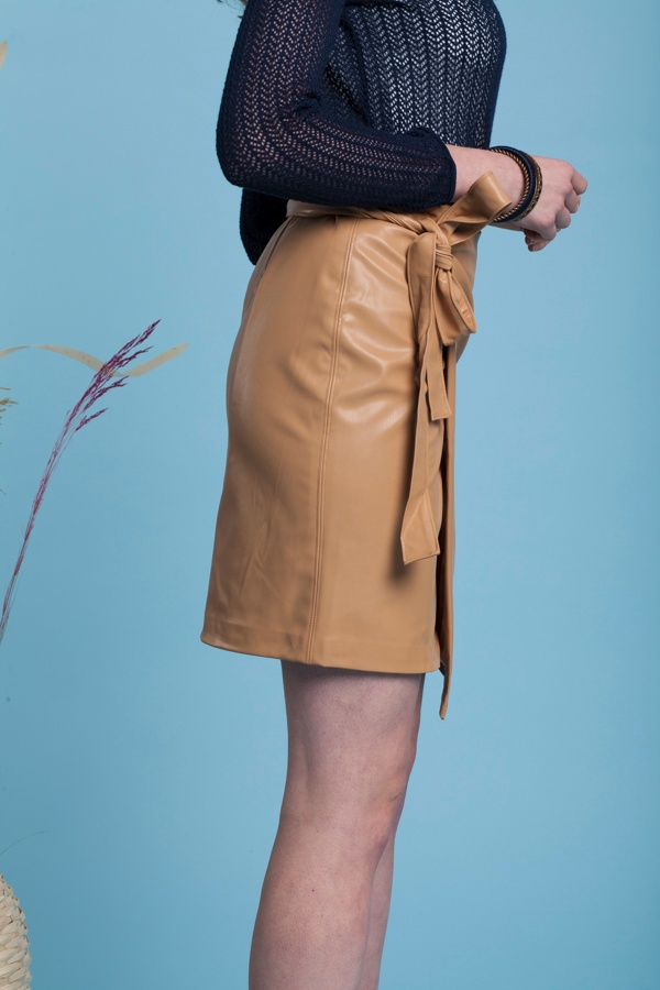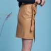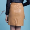 Camel Kuşaklı Kruvaze Deri Mini Etek