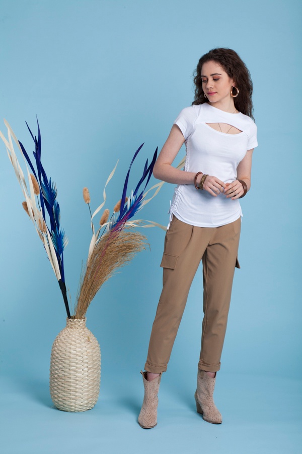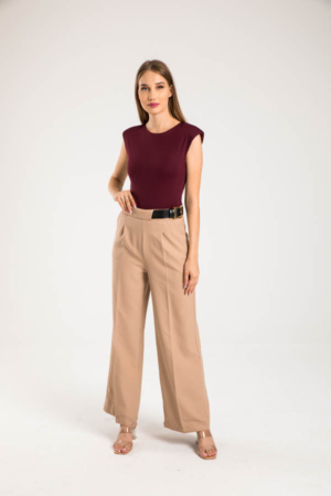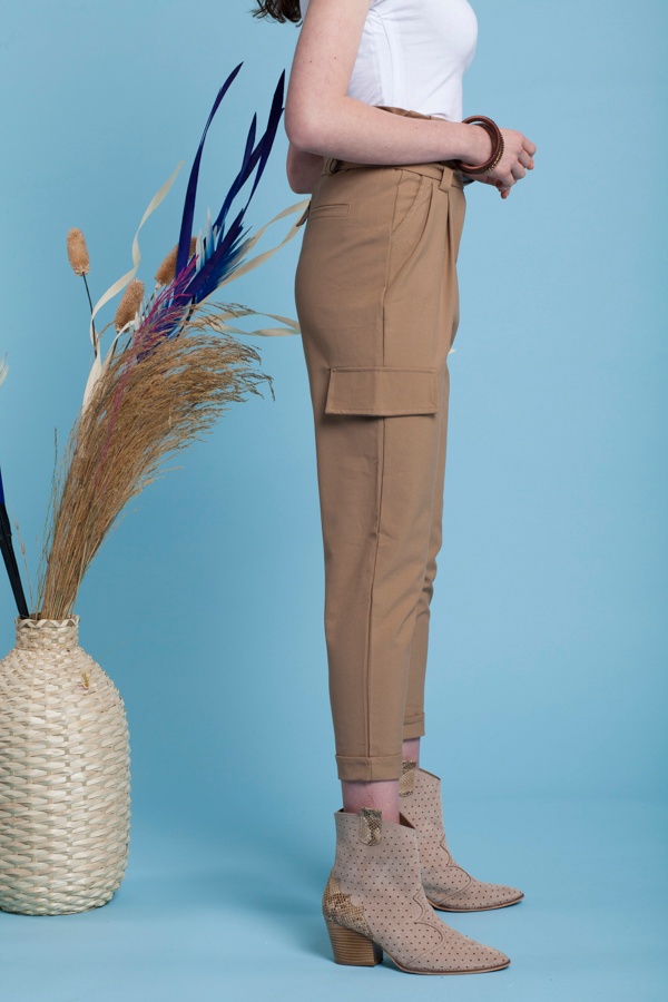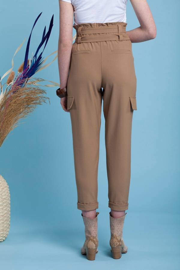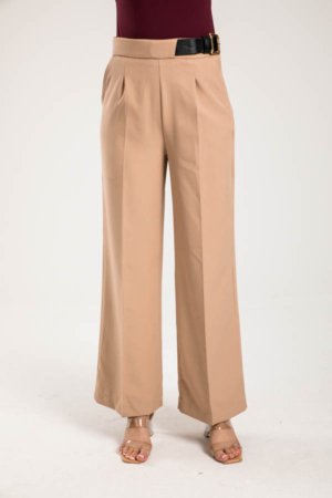 Camel Rengi Çift Kemerli Yanı Cepli Pantolon