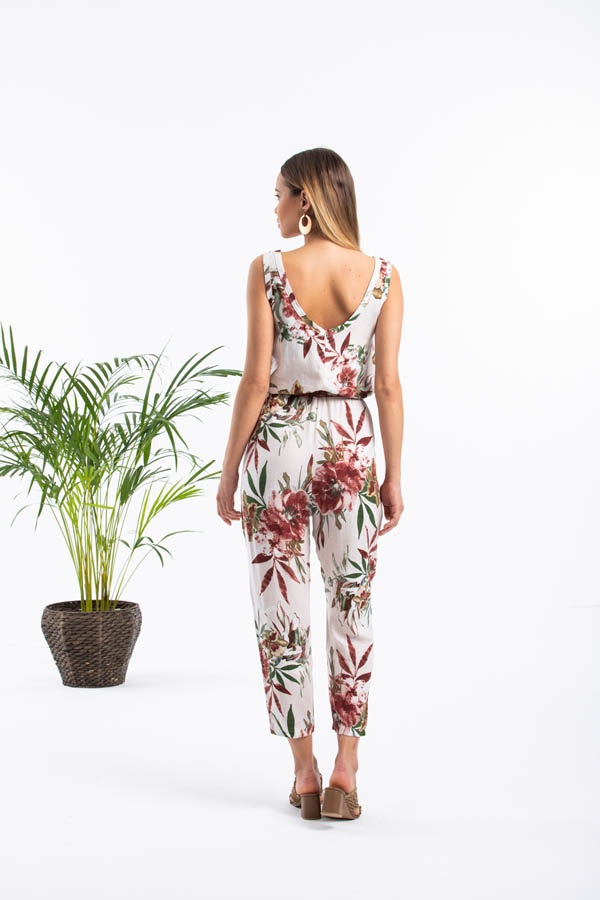 Çiçekli Belden Bağlamalı Rahat Tulum
