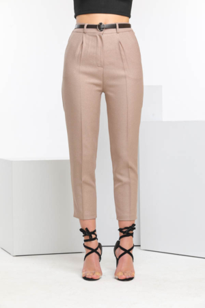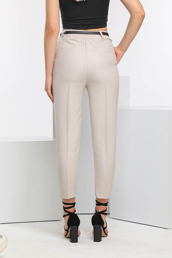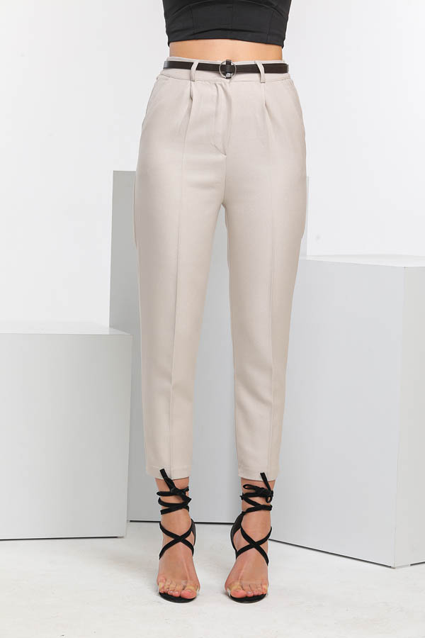 Ekru Kendinden Kemerli Kumaş Pantolon