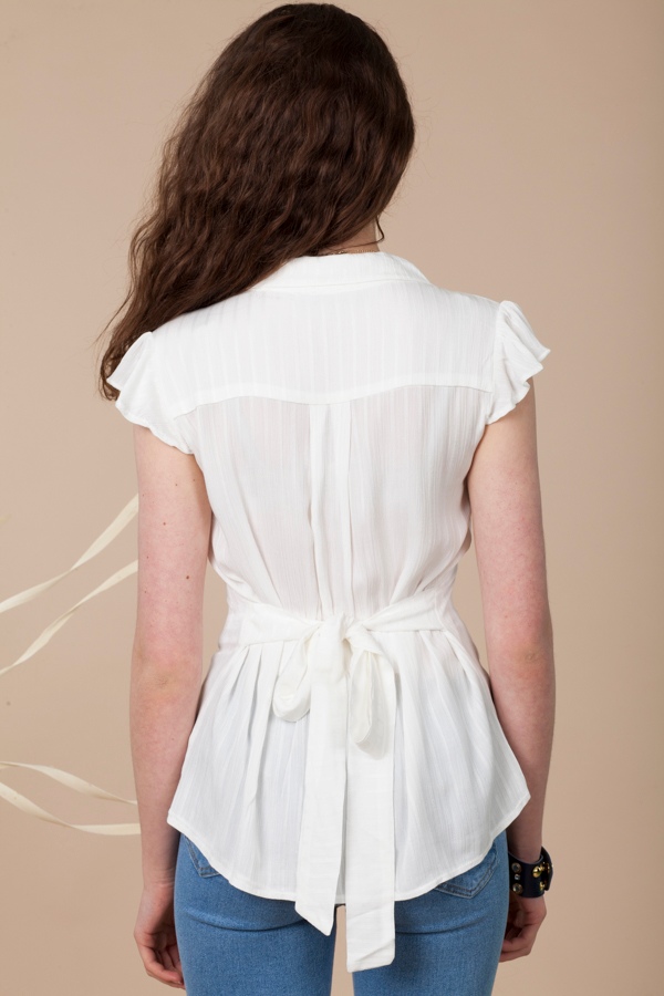 Ekru Kısa Kol Arkadan Kuşaklı Gömlek