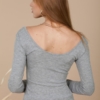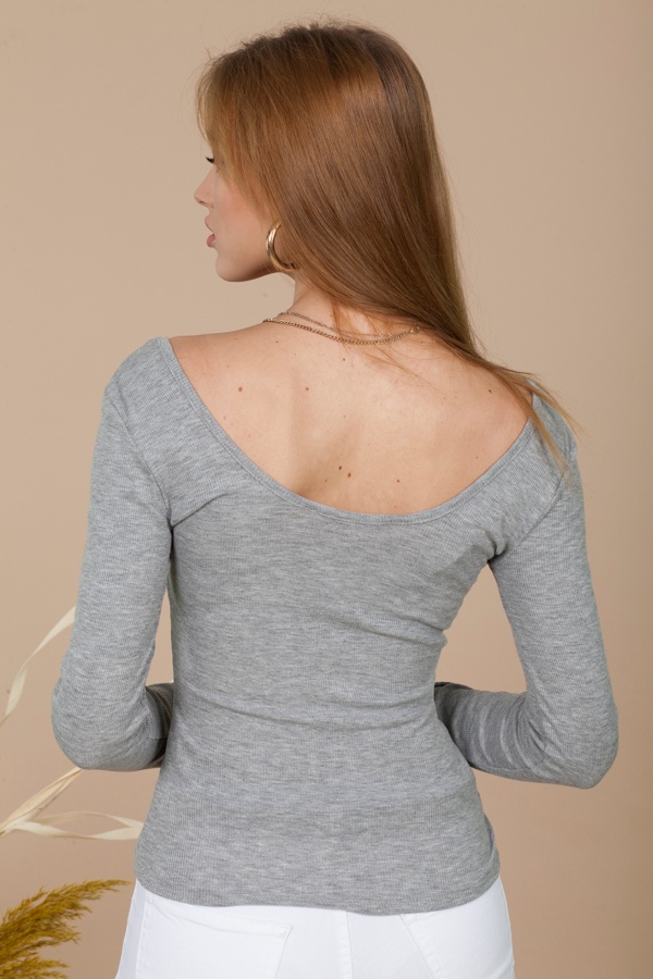 Gri Kendinden Çizgili Uzun Kollu U Yaka Body