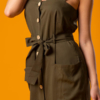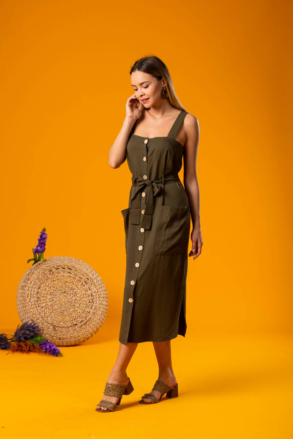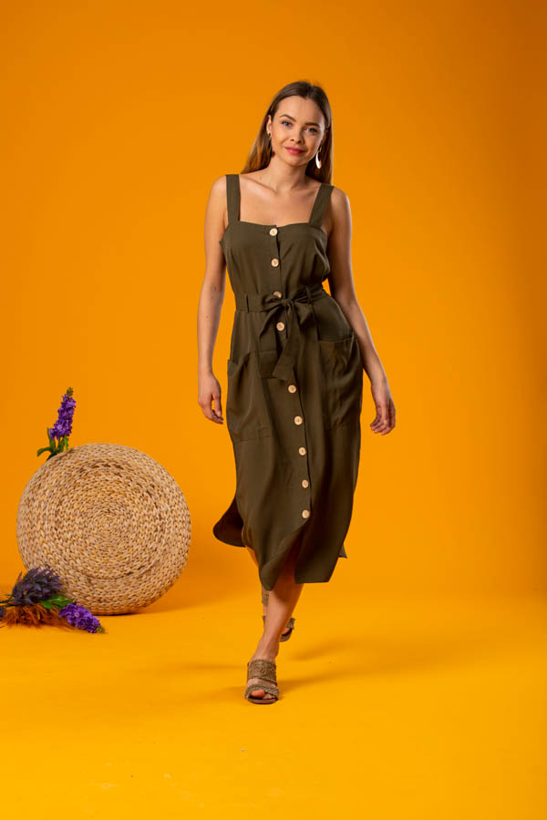 Haki Belden Kemerli Elbise