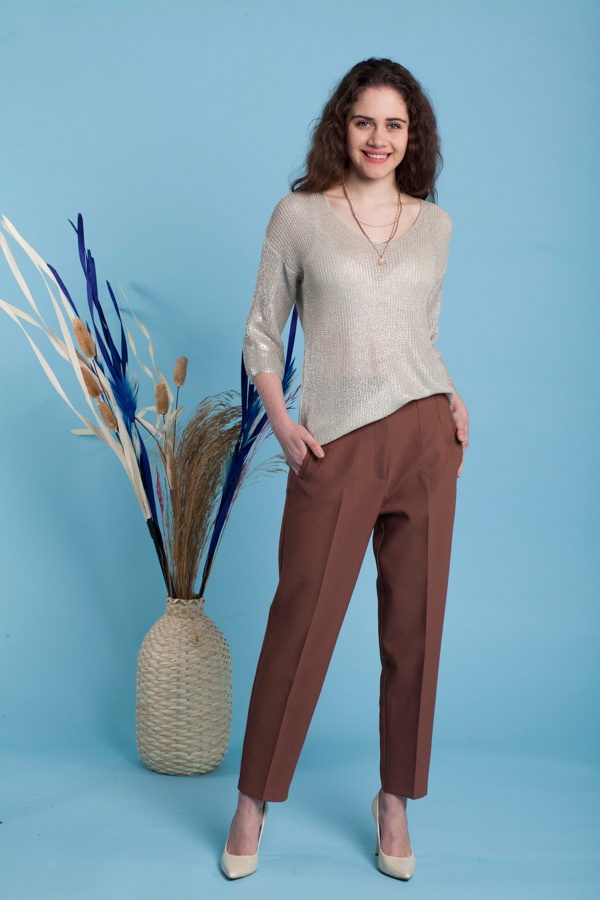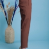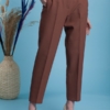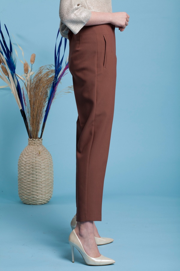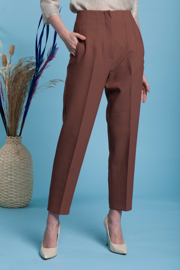 Kahverengi Biyeli Yüksek Bel Kumaş Pantolon