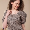 Leopar Desenli Kare Yaka Balon Kol Bluz