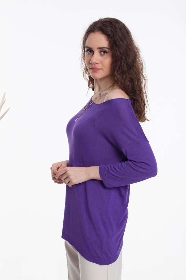 Mor Truvakor Kol Kayık Yaka İnce Triko