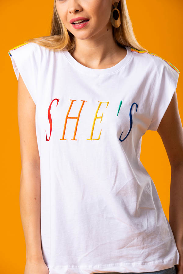 Etiketler: beyaz tişört, nakışlı tişört, renkli tişört, tshirt, yuvarlak yaka tişört