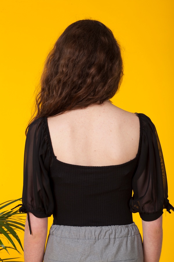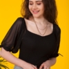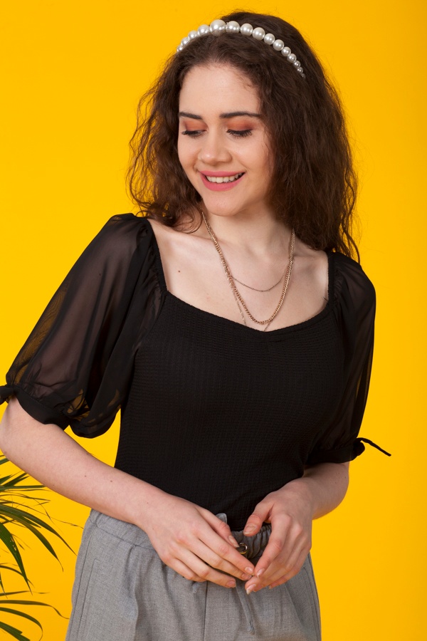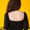 Siyah Kare Yaka Şifon Balon Kollu Bodysuit