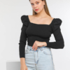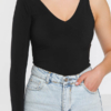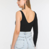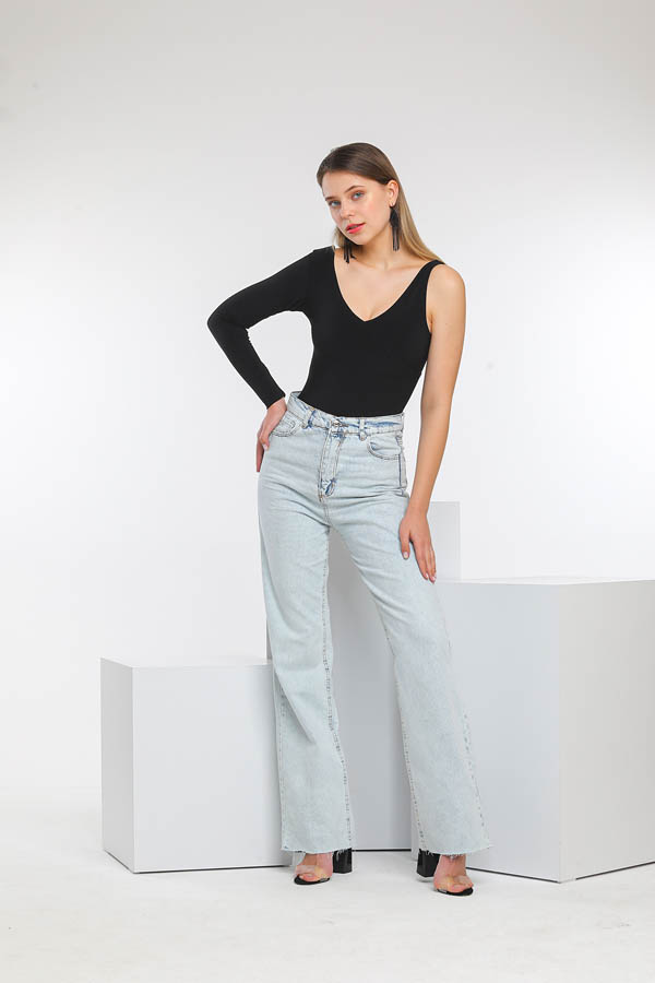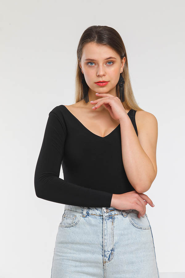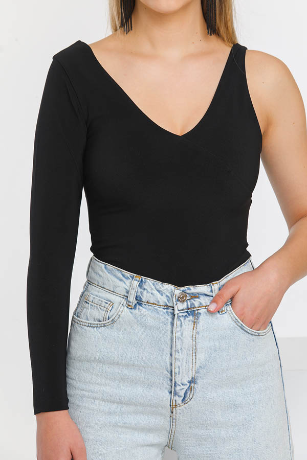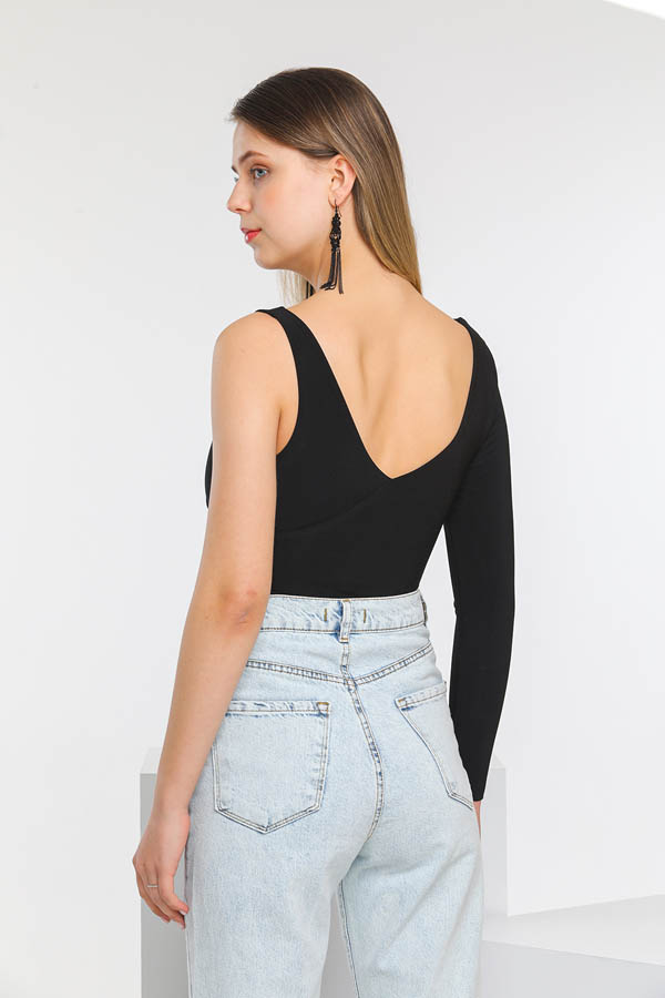 Siyah V Yaka Kol Detaylı Çıtçıtlı Body