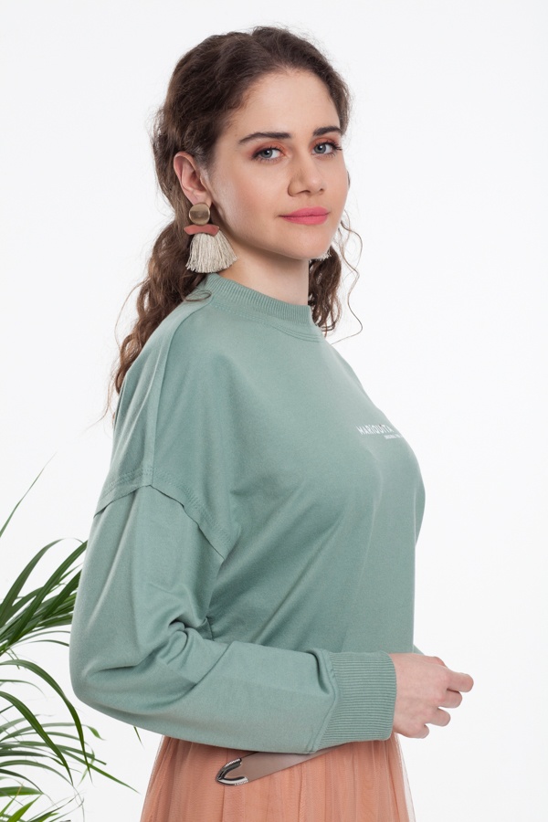 Su Yeşili Bisiklet Yaka Sweatshirt